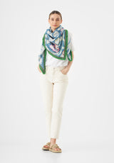 Codello Accessoires wie dieses gewebte Dreieckstuch mit edler Pailletten-Stickerei sind etwas ganz Besonderes. Das Jacquard-Tuch wurde im floralen Design aus reiner Baumwolle in einer indischen Manufaktur gefertigt, in der die traditionelle Jacquard-Weberei eine lange Geschichte hat. Das Triangle besticht durch seinen handwerklichen Look, die besondere Haptik des gewebten Musters und dekorativ bestickte Bordürenabschlüsse.