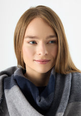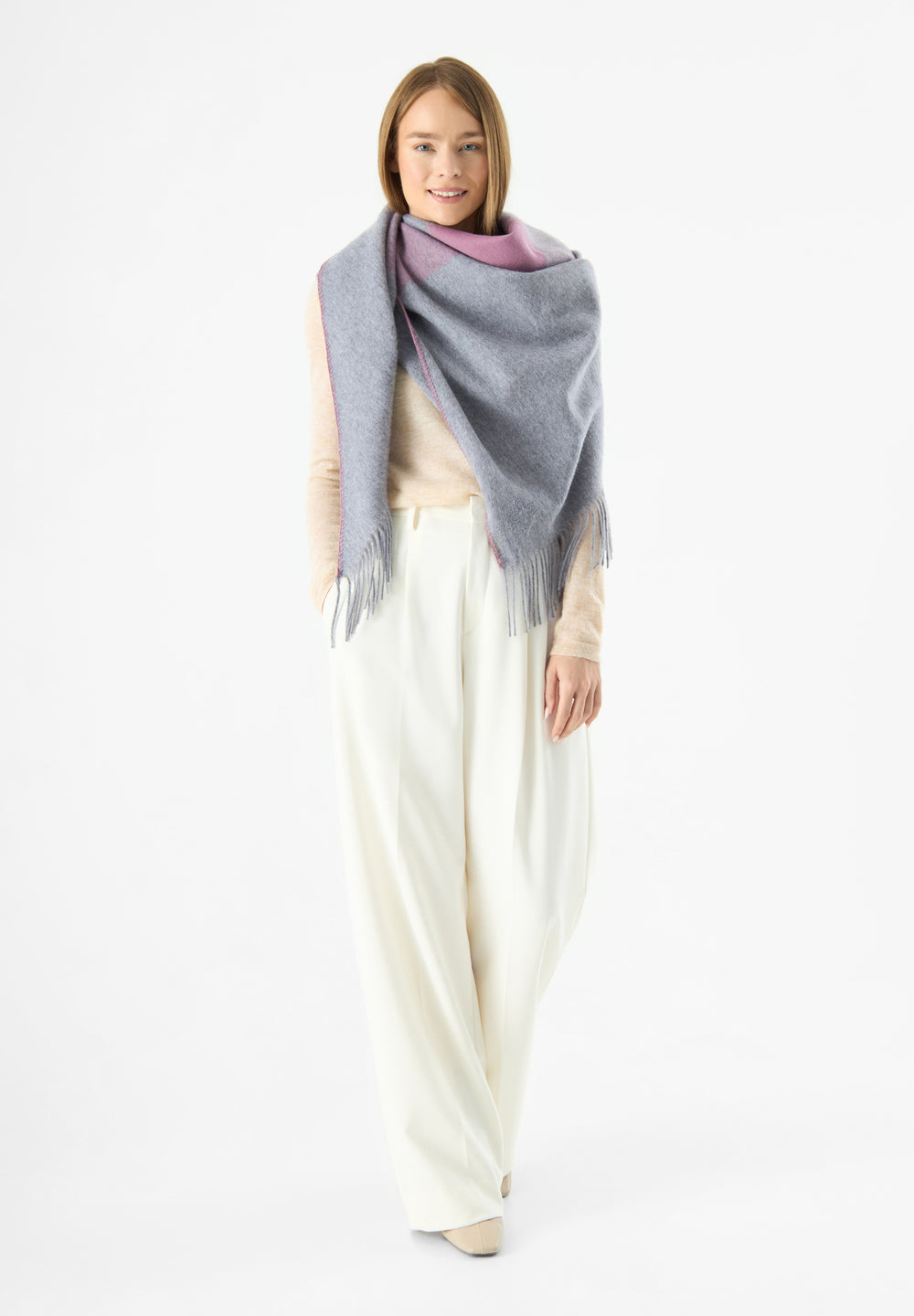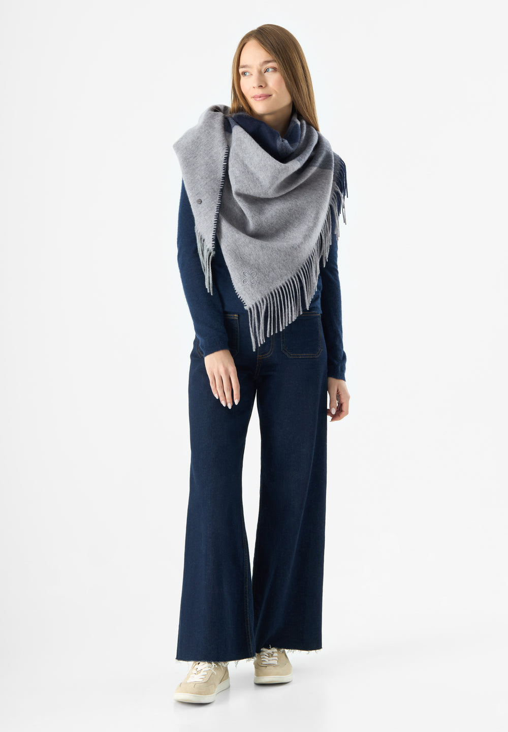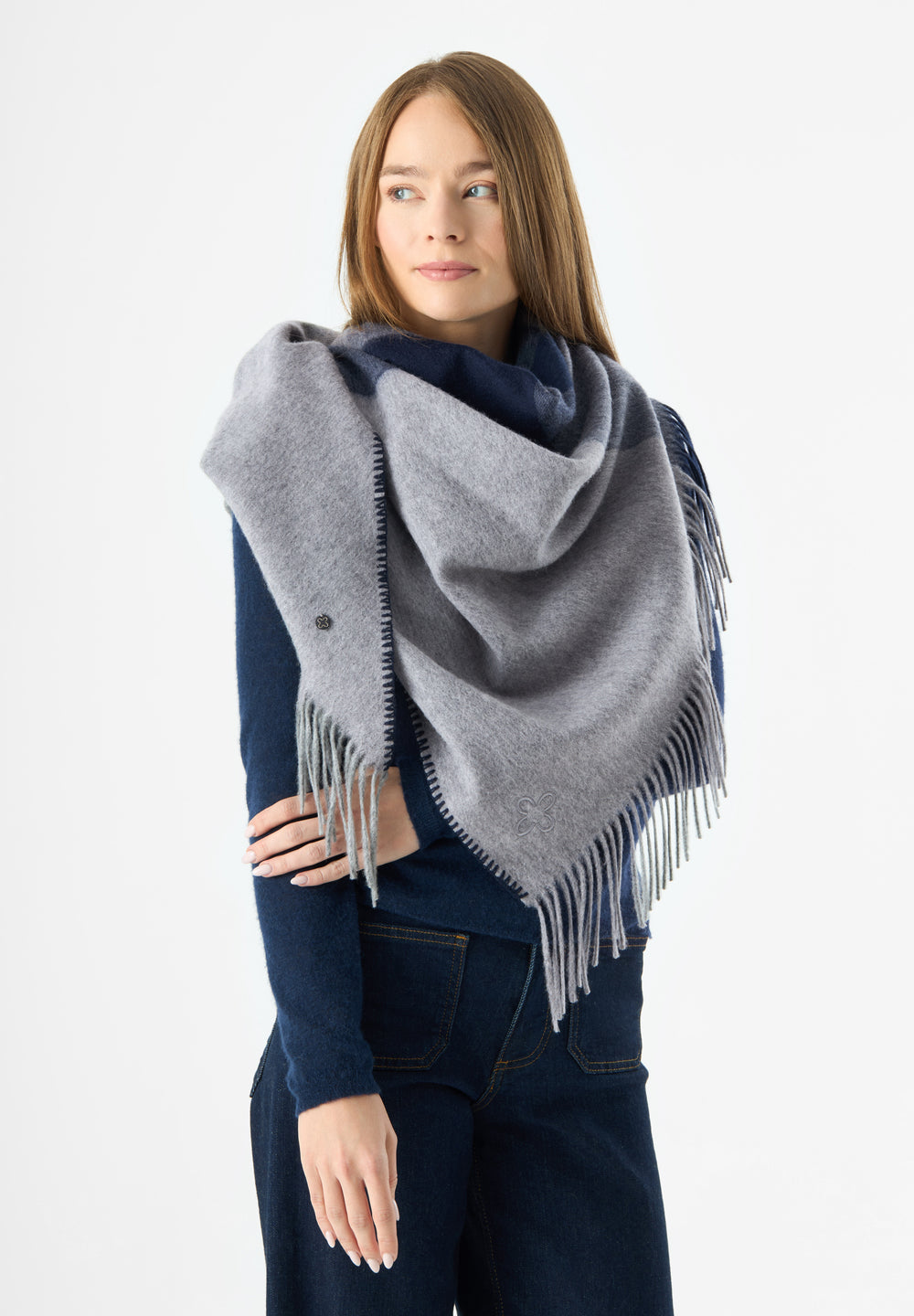 Dieses wärmende Dreieckstuch aus reiner Wolle bringt klassisches Design und zeitgemäße Schlichtheit in harmonischen Einklang. Mit blauen Karos und langen Fransen gestaltet, lässt sich das Accessoire mühelos zu unterschiedlichsten Outfits kombinieren. Das angenehm weiche Wollmaterial schenkt ein behagliches Gefühl und macht das Tuch zum geschmackvollen Begleiter an kühlen Tagen.