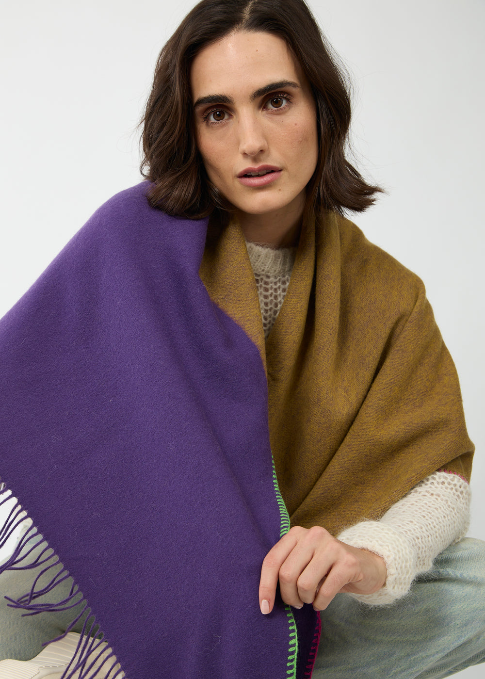 Premium Dreieckstuch aus reiner Wolle im Colour-Blocking-Design