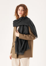 Let's party! Mit diesem fein funkelnden Jacquard-Schal zauberst du im Handumdrehen ein stylisches Event-Outfit. Den Schal einfach als Glanz-Highlight zu Kleidern oder Jumpsuits tragen und fertigt ist der Look. Tipp: Der Schal ist groß genug, dass du ihn auch als Stola benutzen kannst. Er wurde in einem kleinen indischen Manufakturbetrieb aus wärmender Wolle und feiner Baumwolle gewebt und mit silberfarbenen Glanzfäden veredelt.