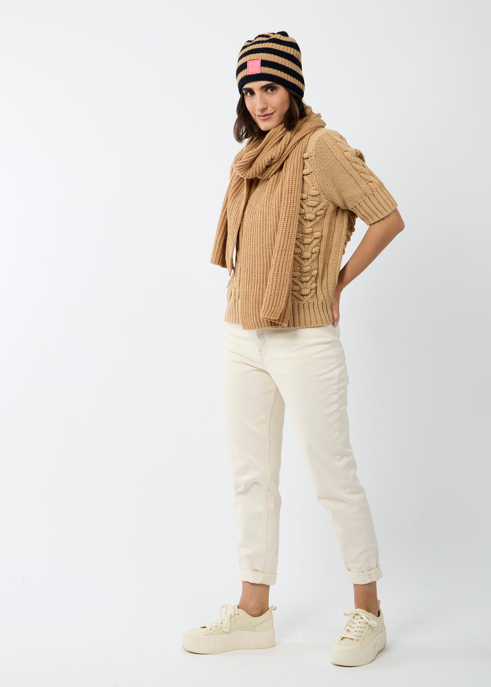 Gestrickte Mütze aus weicher Wollmischung mit klassischen Streifen