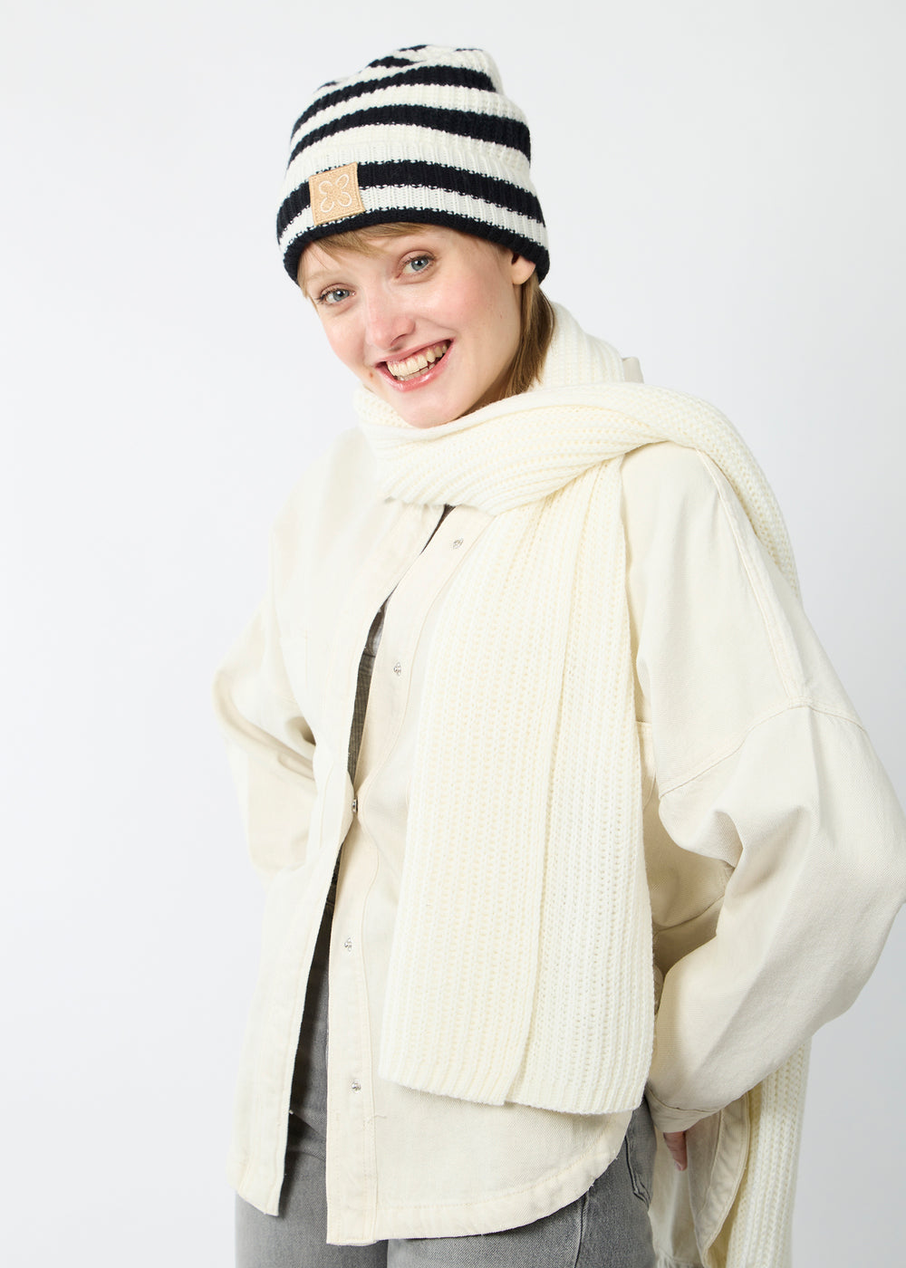 Der Style-Faktor ist bei dieser klassischen Streifenmütze aus softem Rippenstrick hoch. Die Mütze wurde aus unserer #19 WINTER GOLD Qualität aus superweichem, robustem Polyacryl und feiner Wolle gefertigt. Sie hat einen breiten Krempelrand und einen kontrastfarbenen Logo-Patch. Tipp: Wer es cool und classy mag, kombiniert die Mütze mit dem passenden Streifenschal, den es auch in unserem Sortiment gibt.