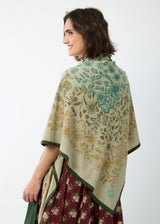 Hochwertiges Feinstrick-Dreieckstuch mit handgedrucktem Blumen-Motiv