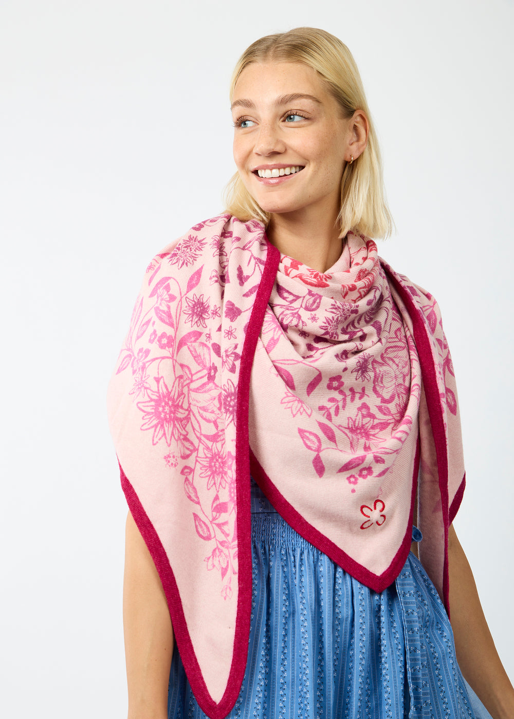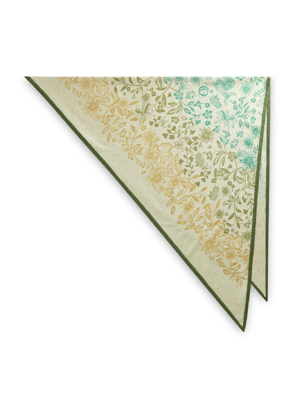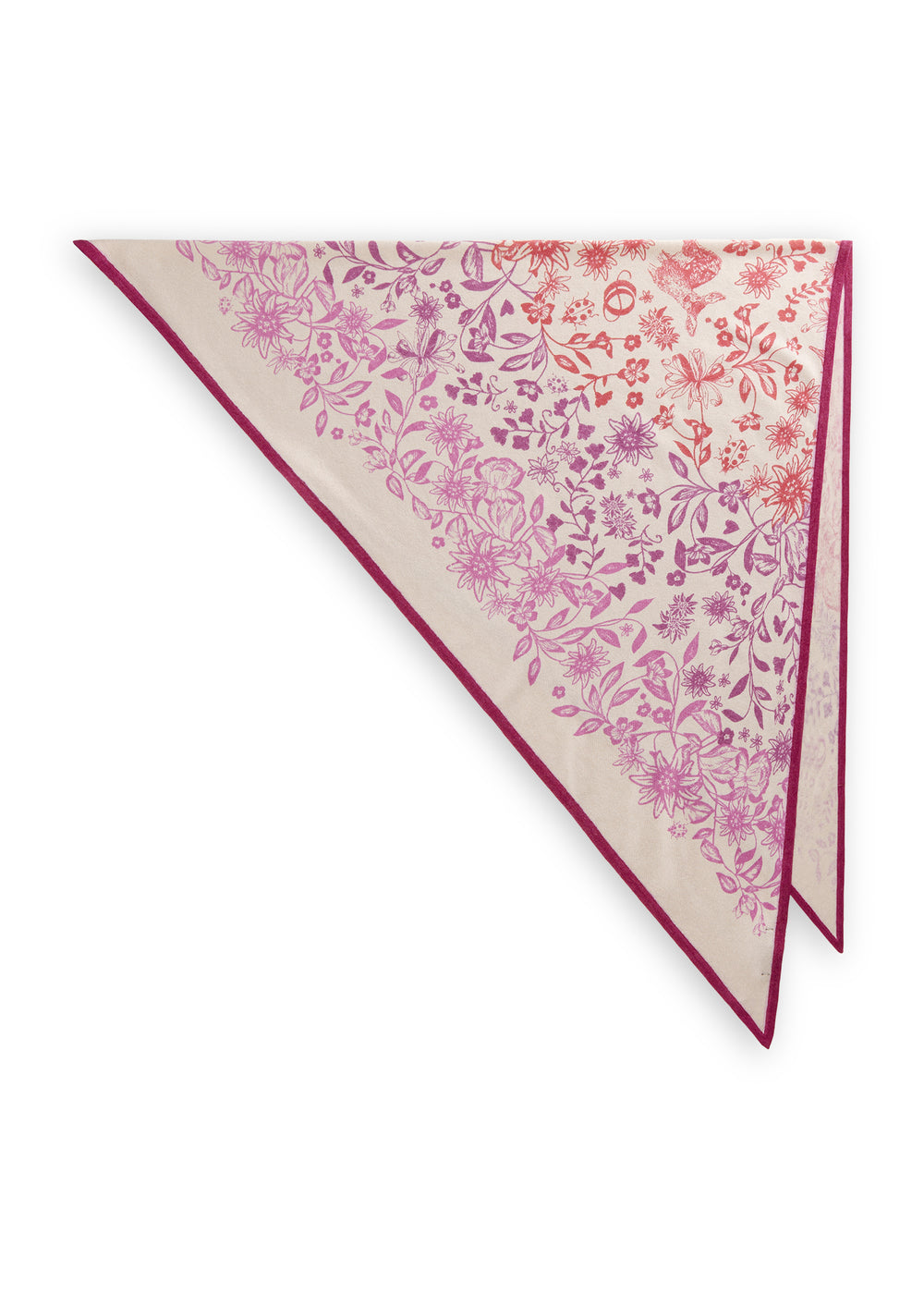 Hochwertiges Feinstrick-Dreieckstuch mit handgedrucktem Blumen-Motiv