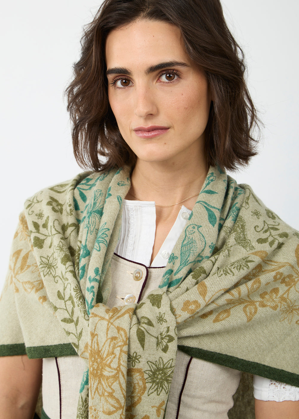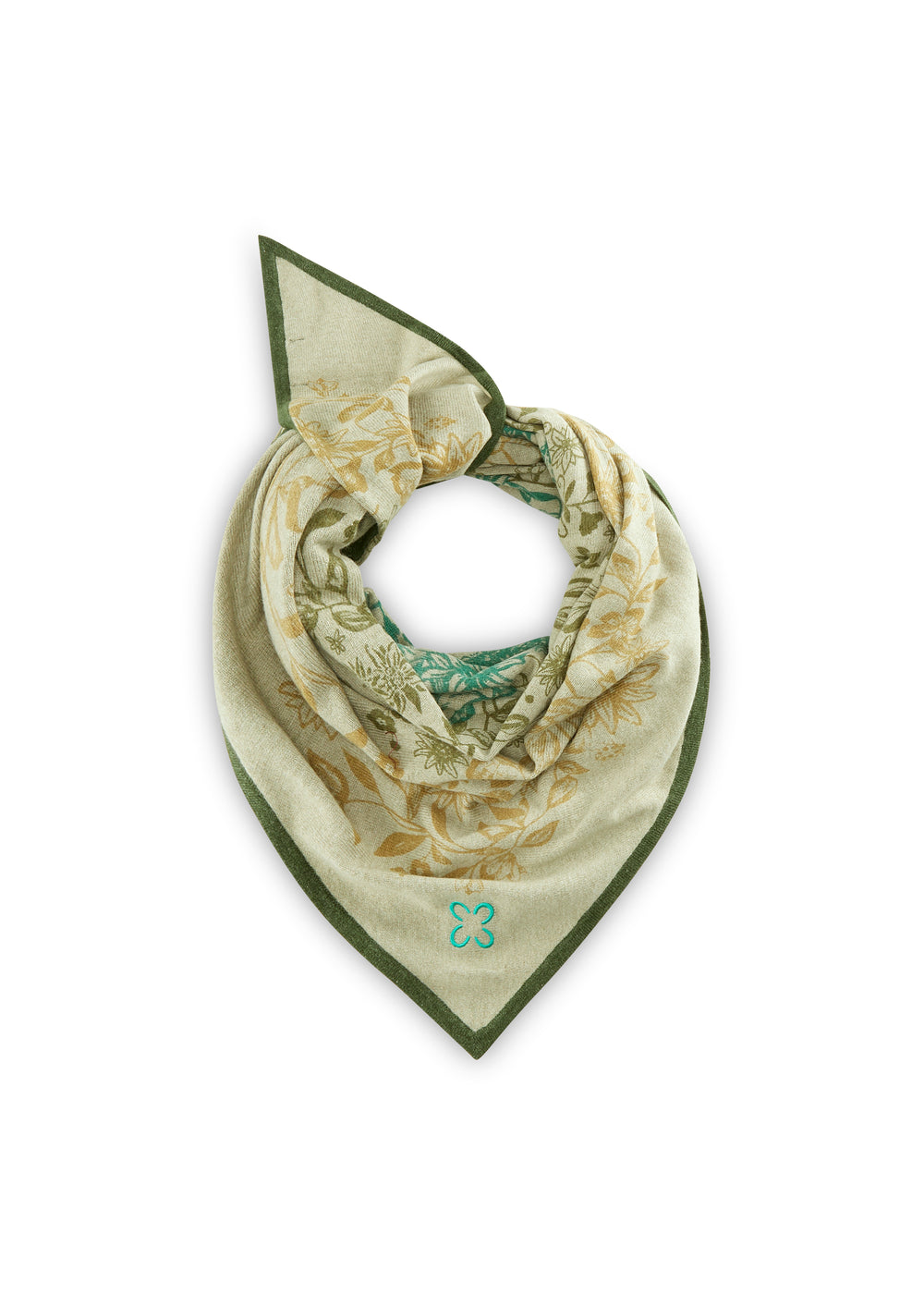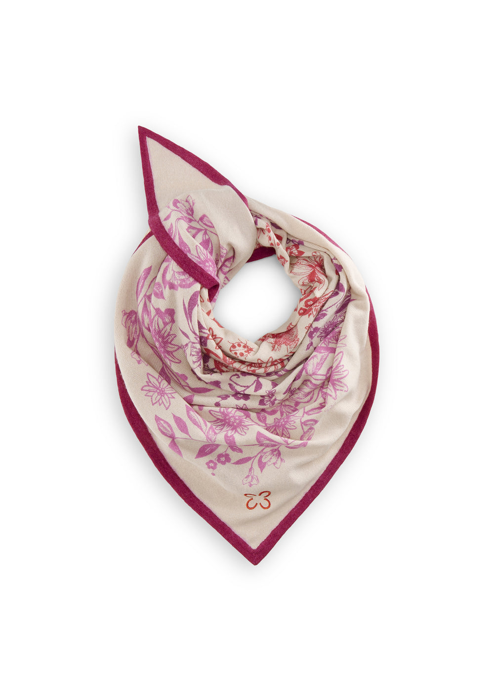 Hochwertiges Feinstrick-Dreieckstuch mit handgedrucktem Blumen-Motiv