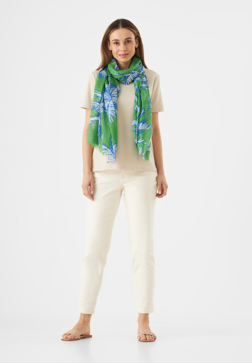 Dieser feine Schal aus #18 PURE BAMBOO mit exotischem Palmen-Print ist ein Styling-Star. In der City tragen wir ihn als Eyecatcher zu Basic, werfen ihn zum Sommerkleid lässig über die Schulter oder als nutzen ihn als coolen Gürtelersatz. Im Urlaub sorgt er ins Haar drapiert oder zum Pareo gebunden für Furore. PURE BAMBOO wird aus der nachhaltigen Bambuspflanze gewonnen, einem umweltfreundlichen Naturprodukt. Mit seinem hohen Ertrag, schnellen Wachstum und geringen Wasserverbrauch ist Bambus eine nachhaltige Wahl.