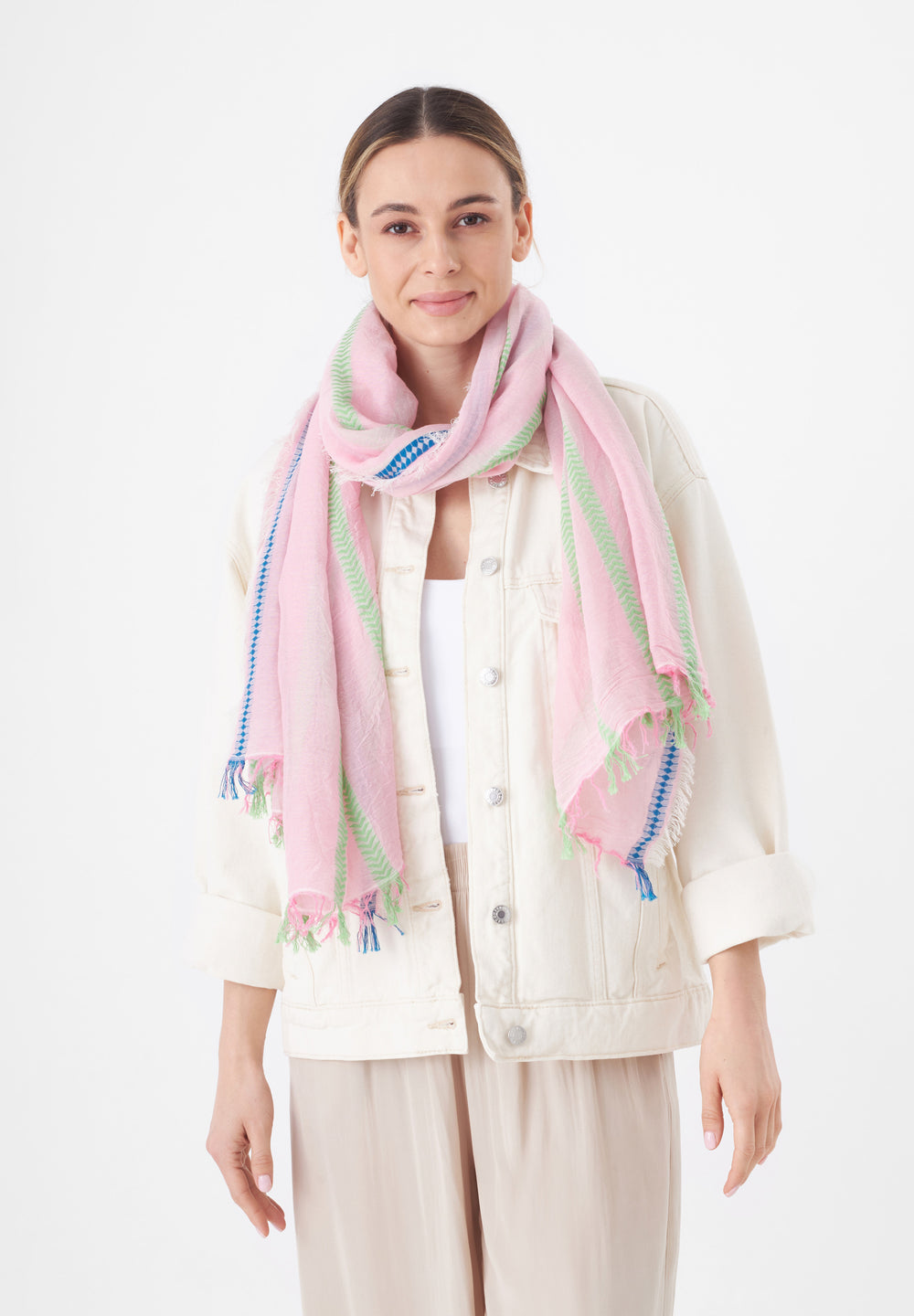 Leichter Schal aus reiner Baumwolle mit gewebten Streifen