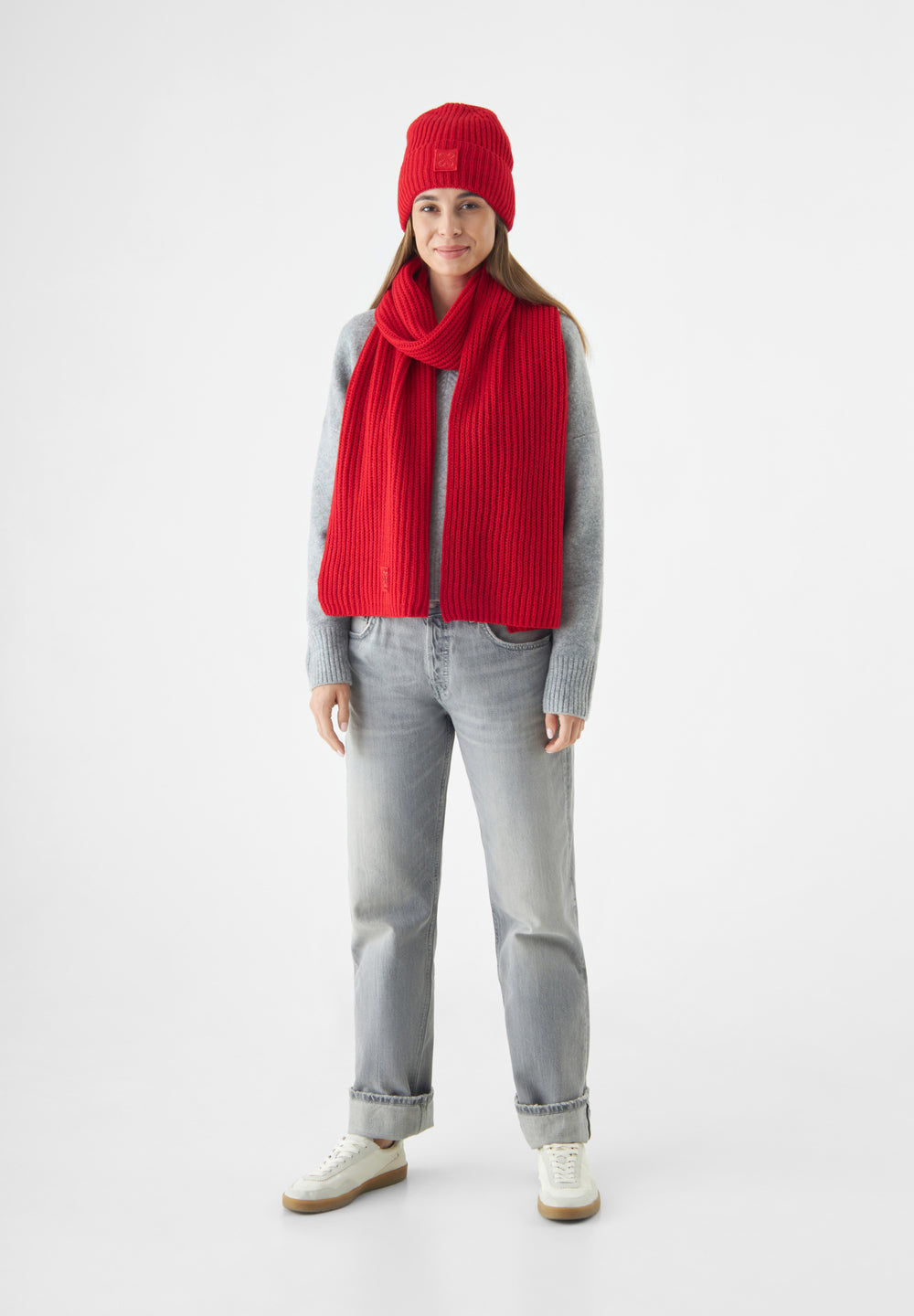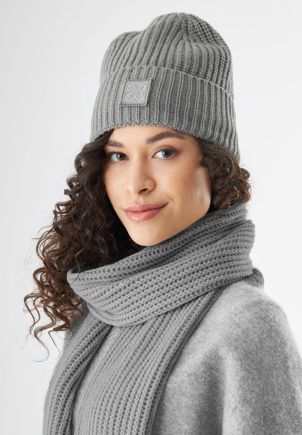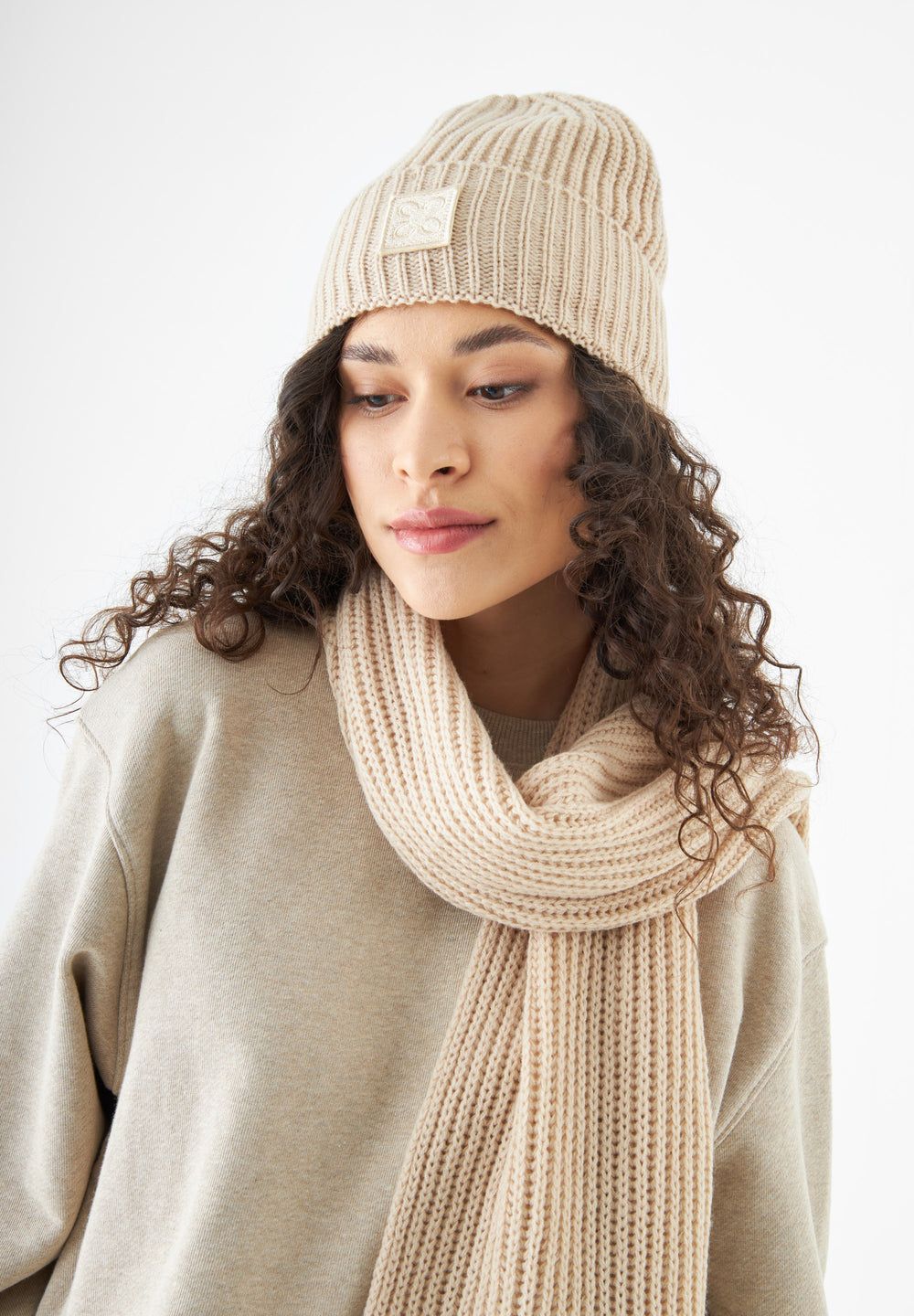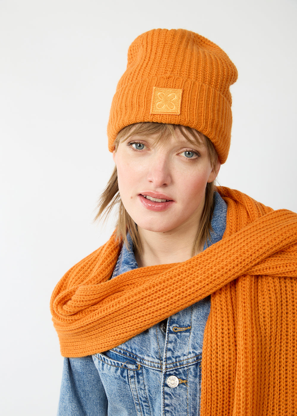 Fashionistas lieben unsere klassische Rippstrick-Mütze, weil sie so cosy ist und dank kuschligem Fleece-Futter garantiert nicht kratzt. Es gibt sie in allen Basic-Farben und saisonalen Trendtönen. Wer mag, trägt die Beanie zusammen mit dem passenden Schal, den du auch bei uns im Sortiment findest. Die Mütze ist mit einem breiten Krempelrand und einem Ton-in-Ton-Logo aus unserer kuscheligen #19 WINTER GOLD Qualität gefertigt. Diese winterliche Strick-Qualität aus superweichem, robustem Polyacryl und feiner Wolle ist besonders soft und wärmend.