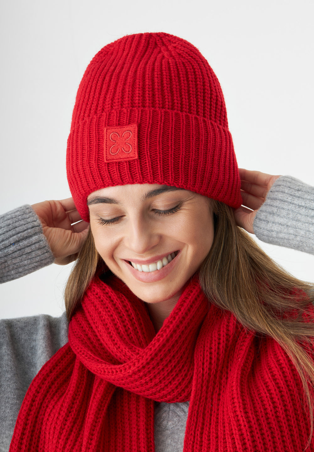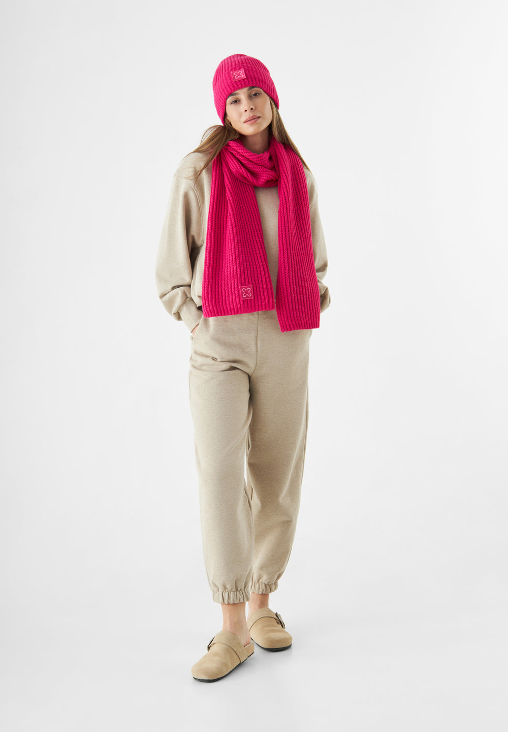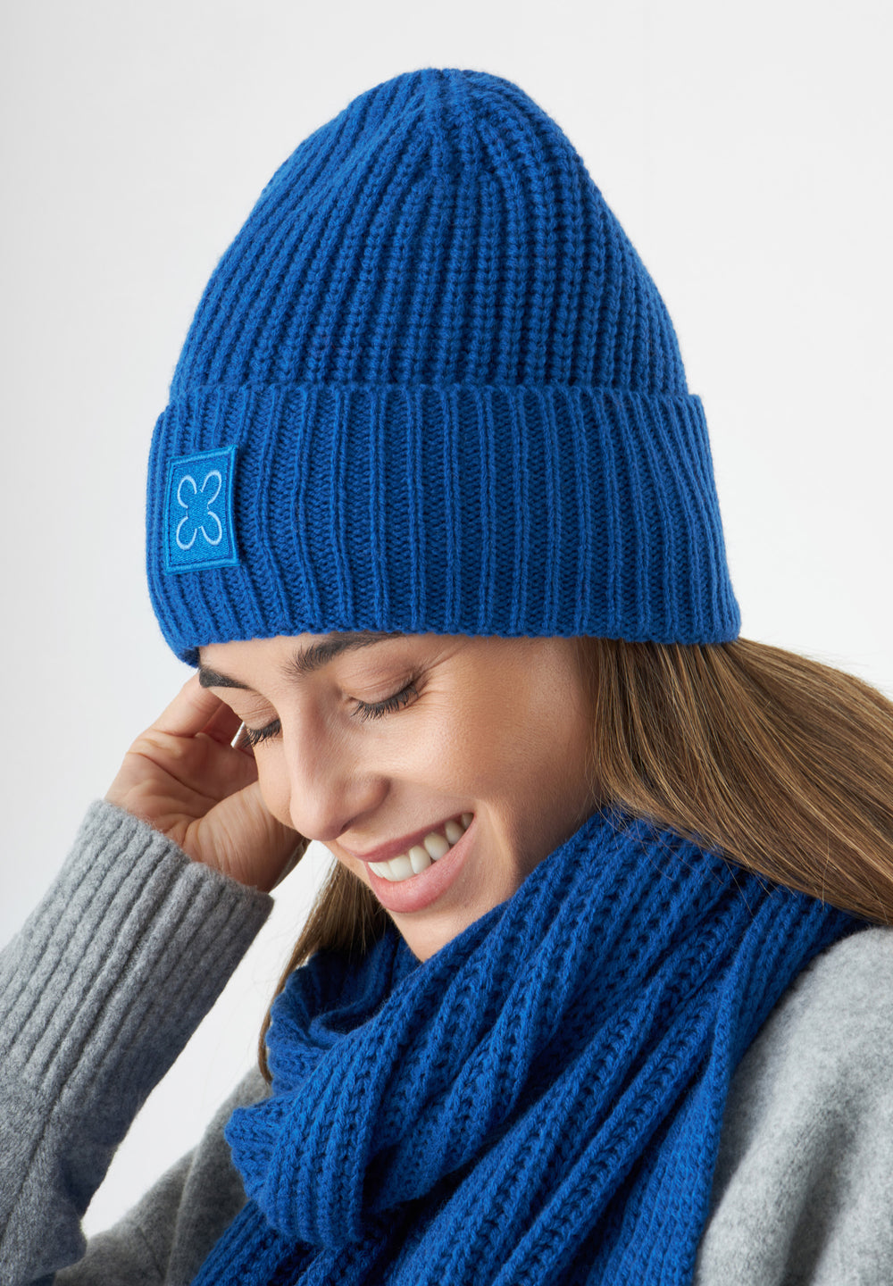 Fashionistas lieben unsere klassische Rippstrick-Mütze, weil sie so cosy ist und dank kuschligem Fleece-Futter garantiert nicht kratzt. Es gibt sie in allen Basic-Farben und saisonalen Trendtönen. Wer mag, trägt die Beanie zusammen mit dem passenden Schal, den du auch bei uns im Sortiment findest. Die Mütze ist mit einem breiten Krempelrand und einem Ton-in-Ton-Logo aus unserer kuscheligen #19 WINTER GOLD Qualität gefertigt. Diese winterliche Strick-Qualität aus superweichem, robustem Polyacryl und feiner Wolle ist besonders soft und wärmend.