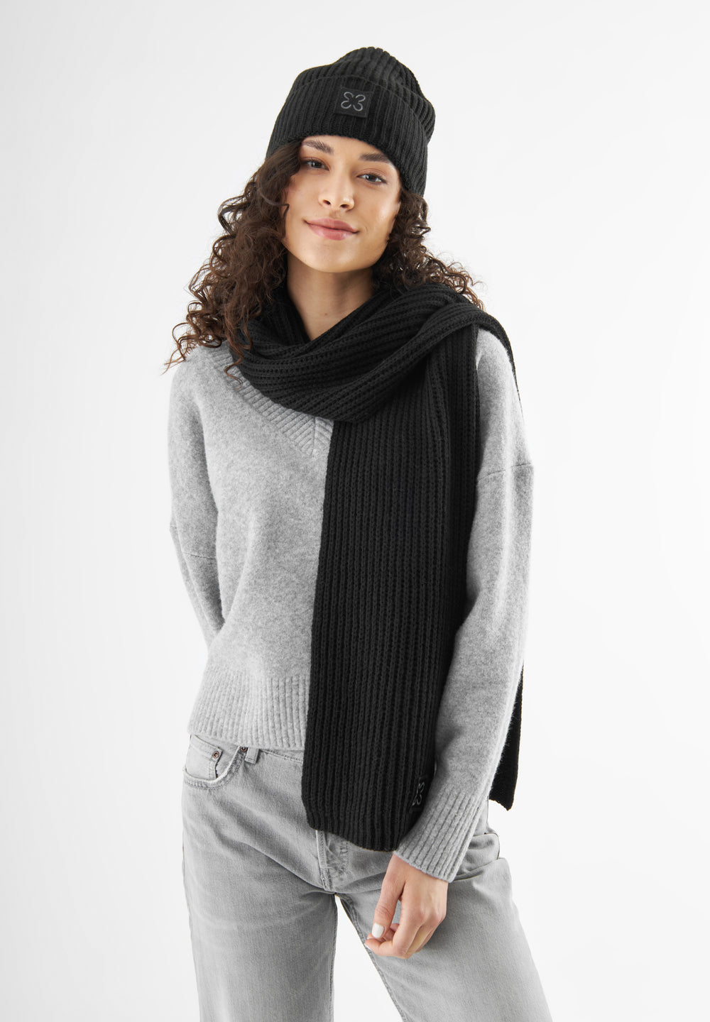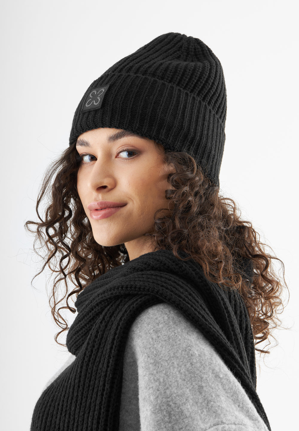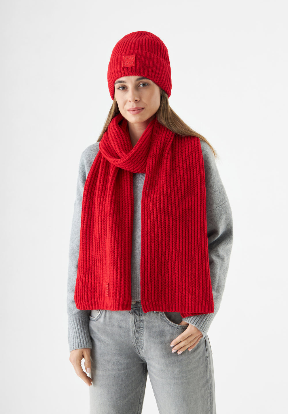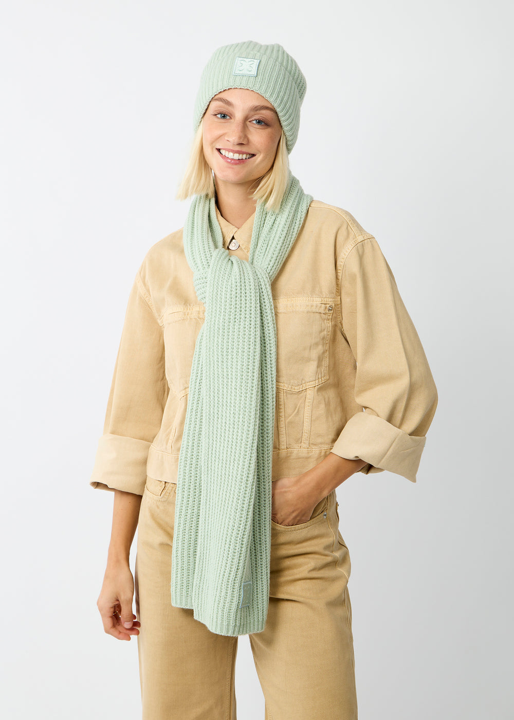 Fashionistas lieben unsere klassische Rippstrick-Mütze, weil sie so cosy ist und dank kuschligem Fleece-Futter garantiert nicht kratzt. Es gibt sie in allen Basic-Farben und saisonalen Trendtönen. Wer mag, trägt die Beanie zusammen mit dem passenden Schal, den du auch bei uns im Sortiment findest. Die Mütze ist mit einem breiten Krempelrand und einem Ton-in-Ton-Logo aus unserer kuscheligen #19 WINTER GOLD Qualität gefertigt. Diese winterliche Strick-Qualität aus superweichem, robustem Polyacryl und feiner Wolle ist besonders soft und wärmend.