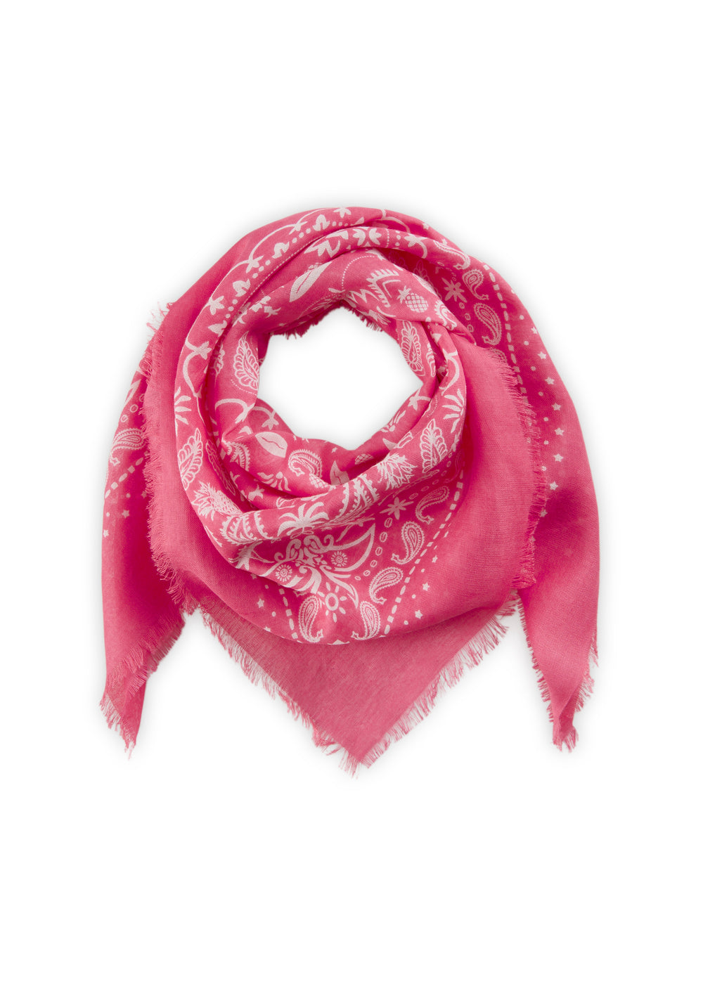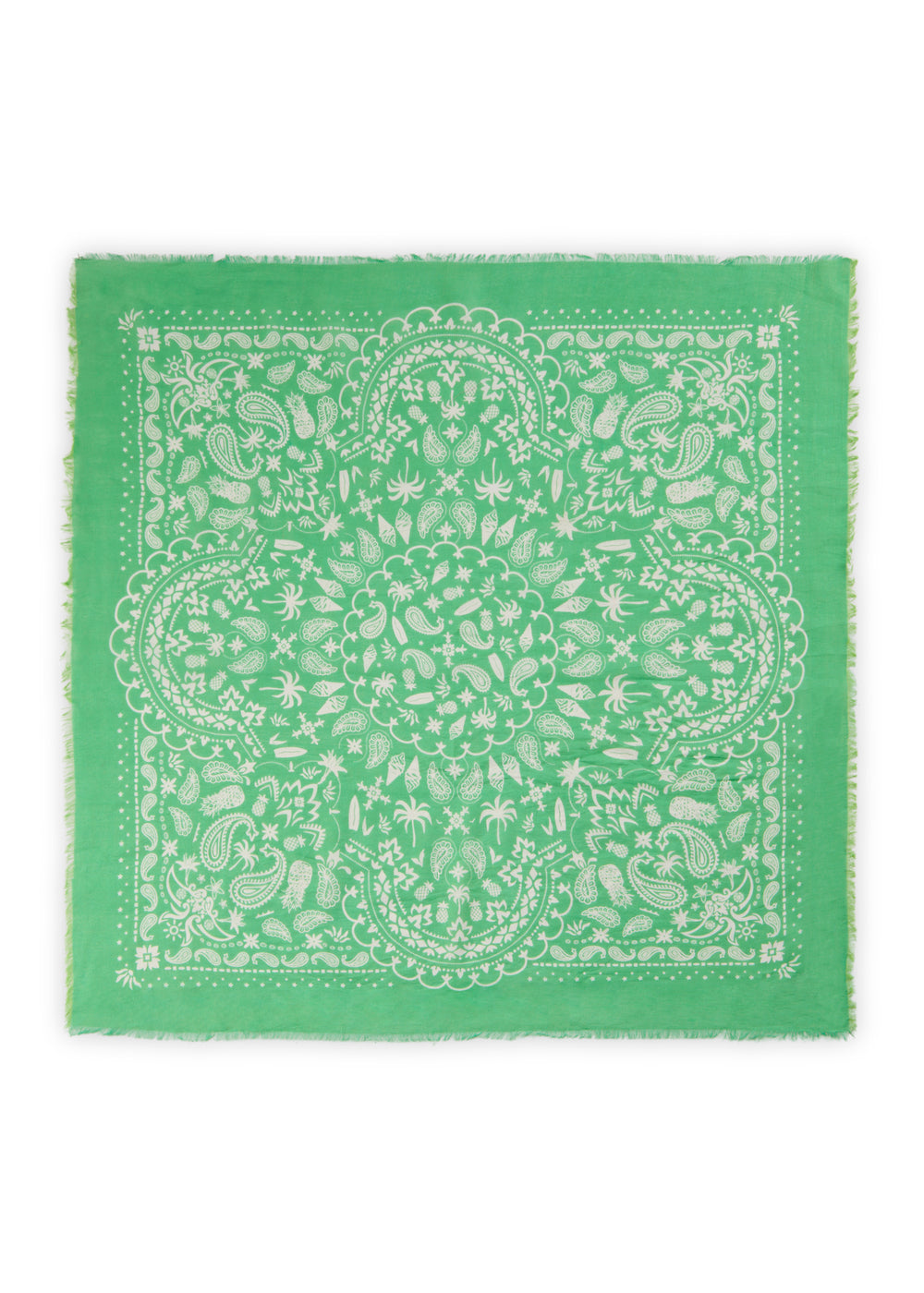 Mit seiner großzügigen Größe von 70 x 70 cm ist es ein echtes Multitalent: Ob lässig um den Hals, als Hairwrap, Kopftuch, Taschen-Accessoire oder sogar als leichtes Bandeau-Top – dieses Bandana macht jeden Look ein bisschen sonniger.