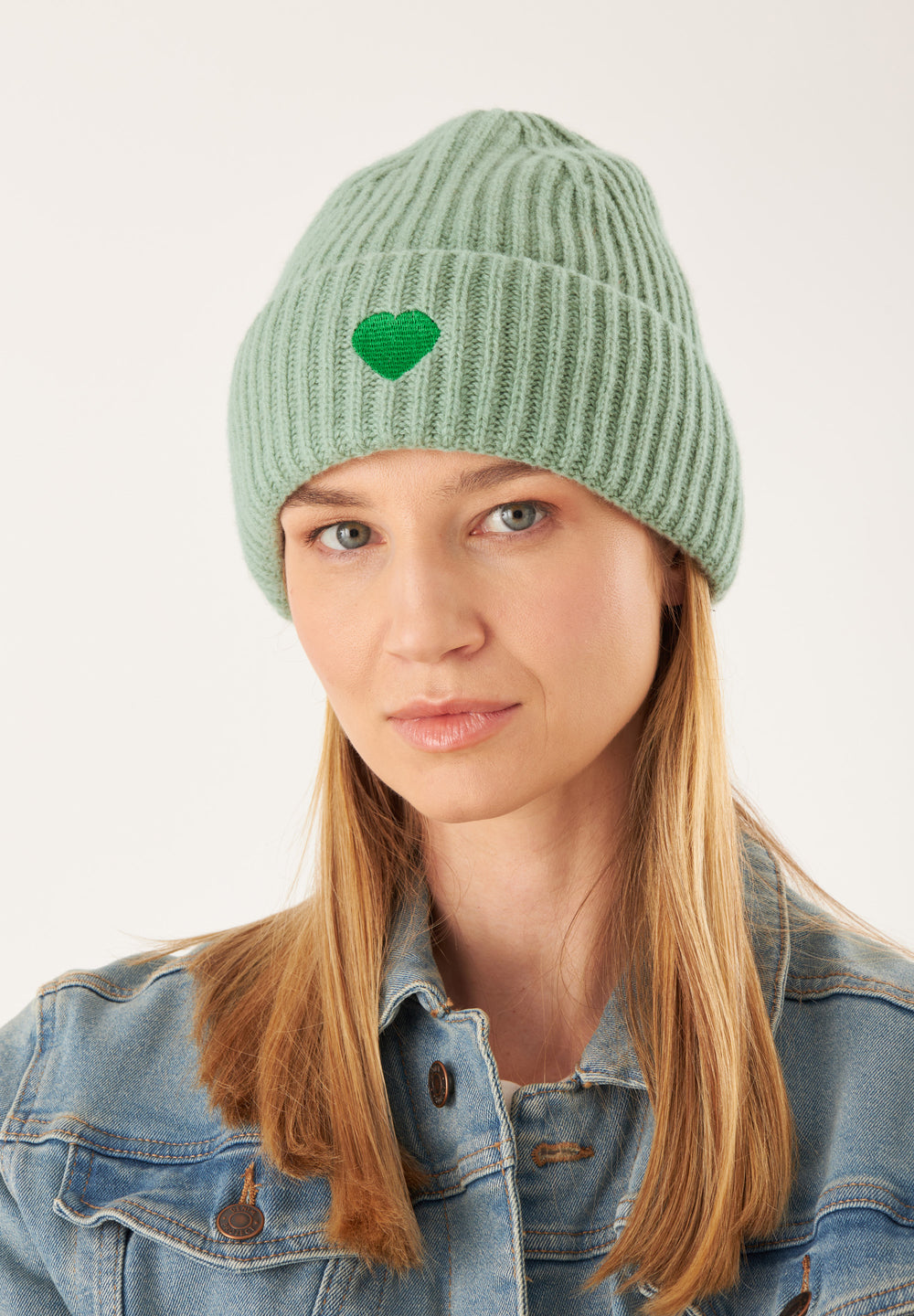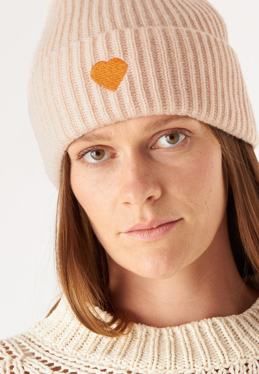 Premium Mütze aus Wolle und Kaschmir mit Herzstickerei