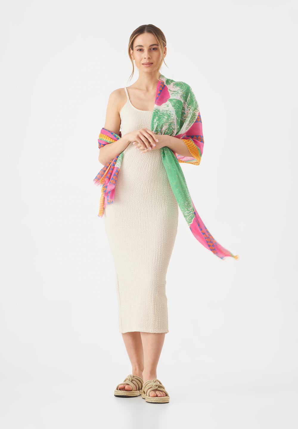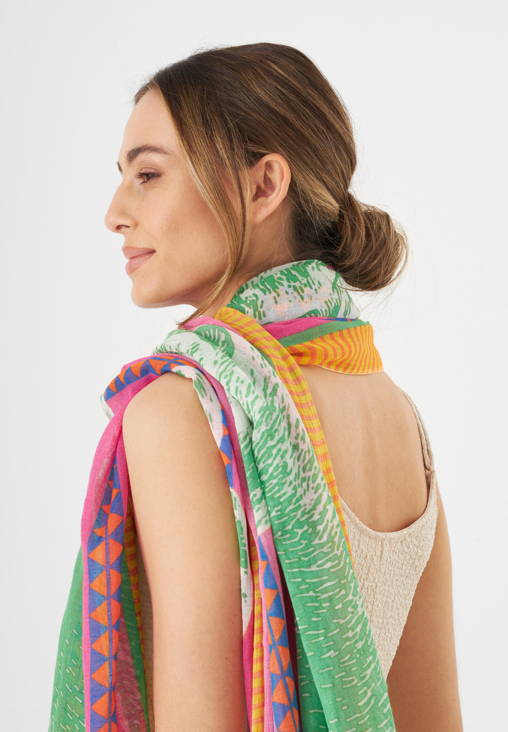 Dieser angenehm leichte und luftige Schal mit plakativem Elefanten-Print aus Baumwolle, Modal und Leinen wirkt besonders fashionable, wenn du ihn mit Weiß kombinierst. Die Mischqualität ist perfekt für den Sommer geeignet. Sie vereint die Vorzüge der drei Fasern. Leinen steht für eine edle Optik gepaart mit einer kernigen Griffigkeit. Modalfasern geben dem Schal Weichheit. Der Baumwollanteil sorgt für Lässigkeit und Unkompliziertheit. Der natürliche Kühleffekt und die gute Luftdurchlässigkeit machen den Stoff vor allem bei warmen Temperaturen sehr beliebt.
