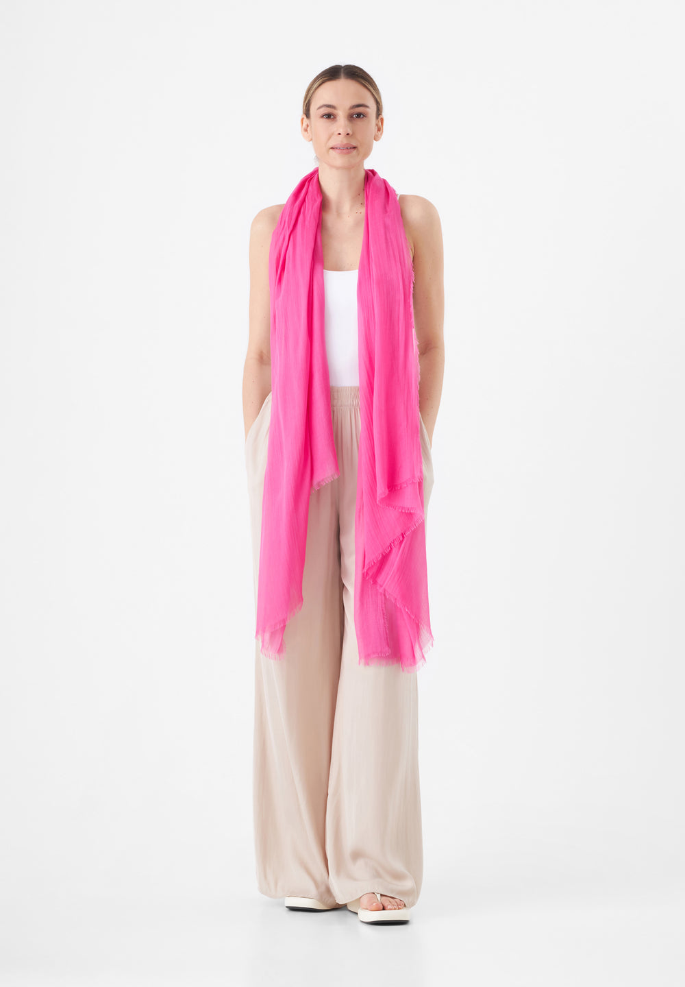 Less is more. Dieser betont schlichte, hauchfeine und ultrasofte Schal aus #18 PURE BAMBOO gehört zu den Must-haves des Sommers. Er toppt jeden Eyecatcher-Look, unterstreicht aber auch die Coolness von cleanen Basic-Outfits. PURE BAMBOO wird aus der nachhaltigen Bambuspflanze gewonnen, einem umweltfreundlichen Naturprodukt. Mit seinem hohen Ertrag, schnellen Wachstum und geringen Wasserverbrauch ist Bambus eine nachhaltige Wahl.
