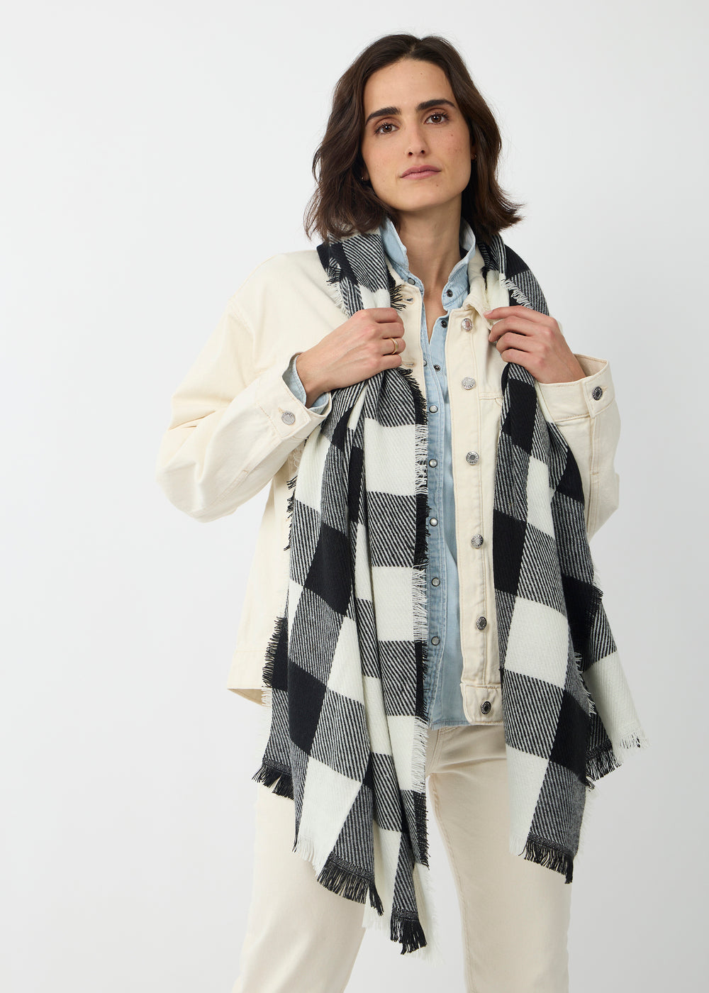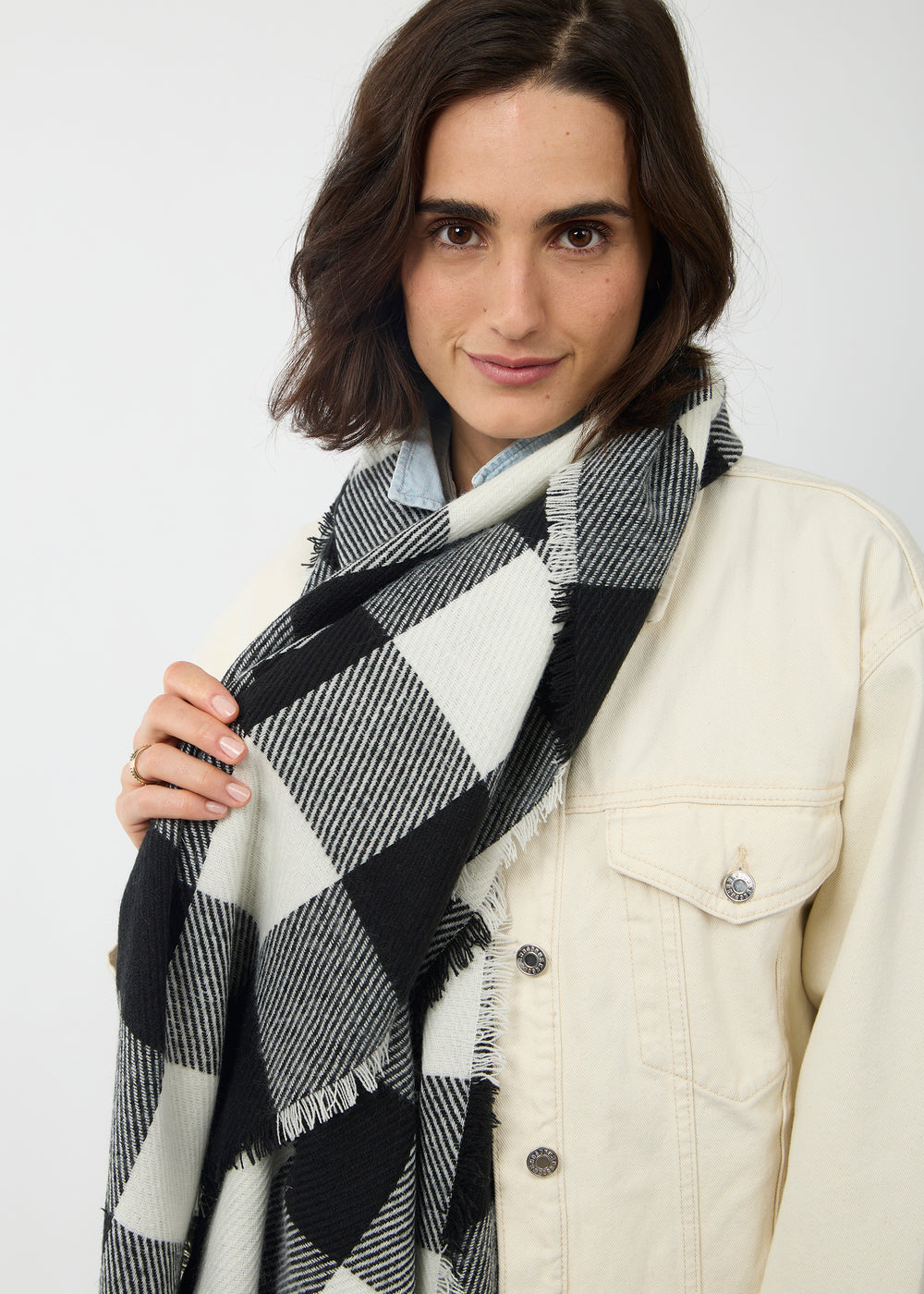 Wärmender Schal mit großem Karo-Muster