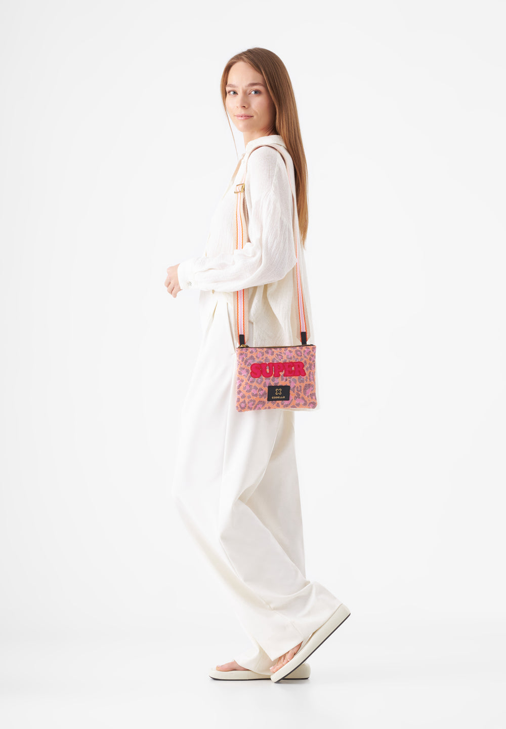 Umhängetasche aus robustem Canvas mit Leo-Muster und Schriftzug